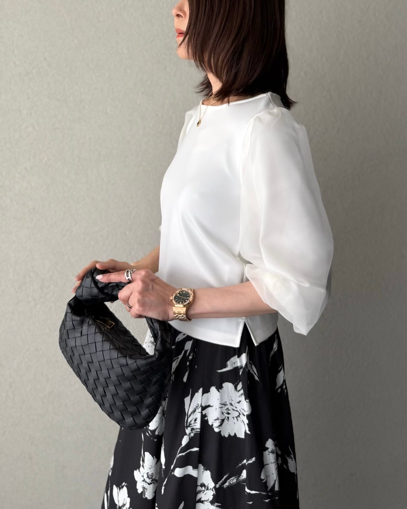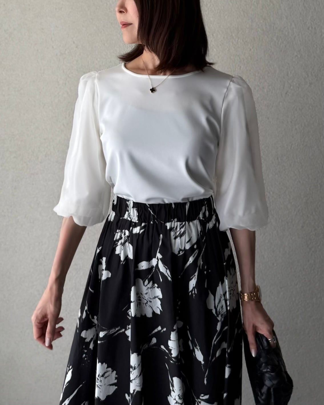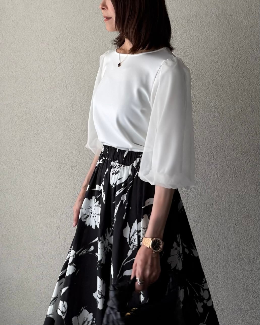 オーガンジーを重ねた上品で華やかさもあるプルオーバー。