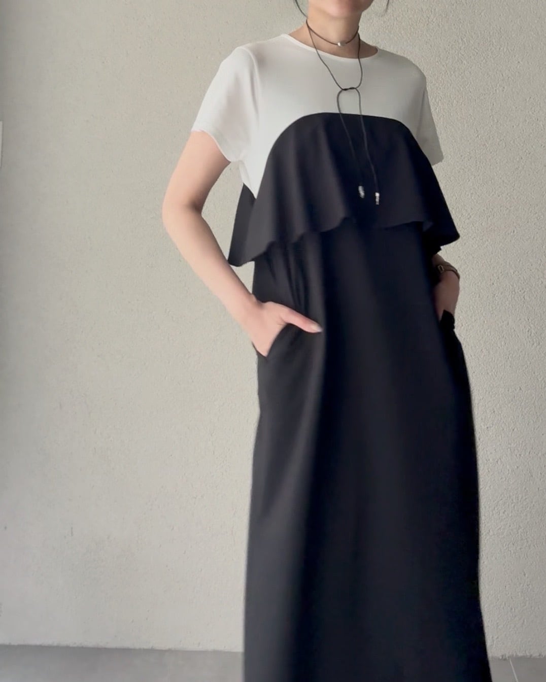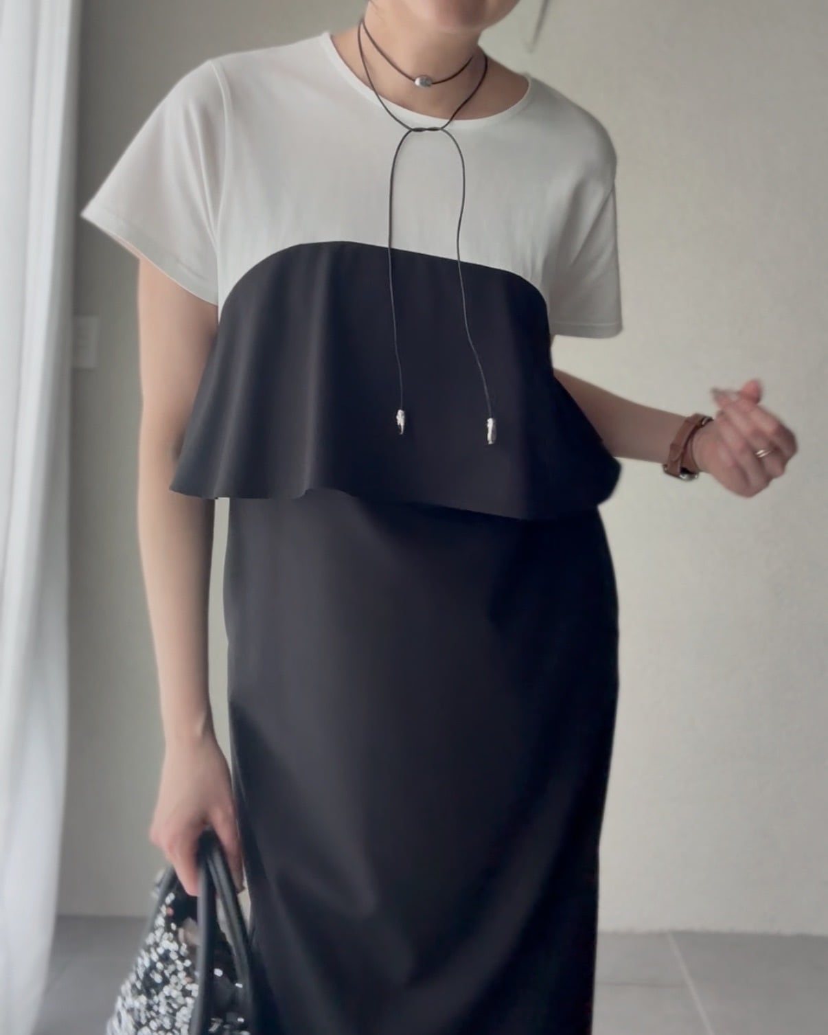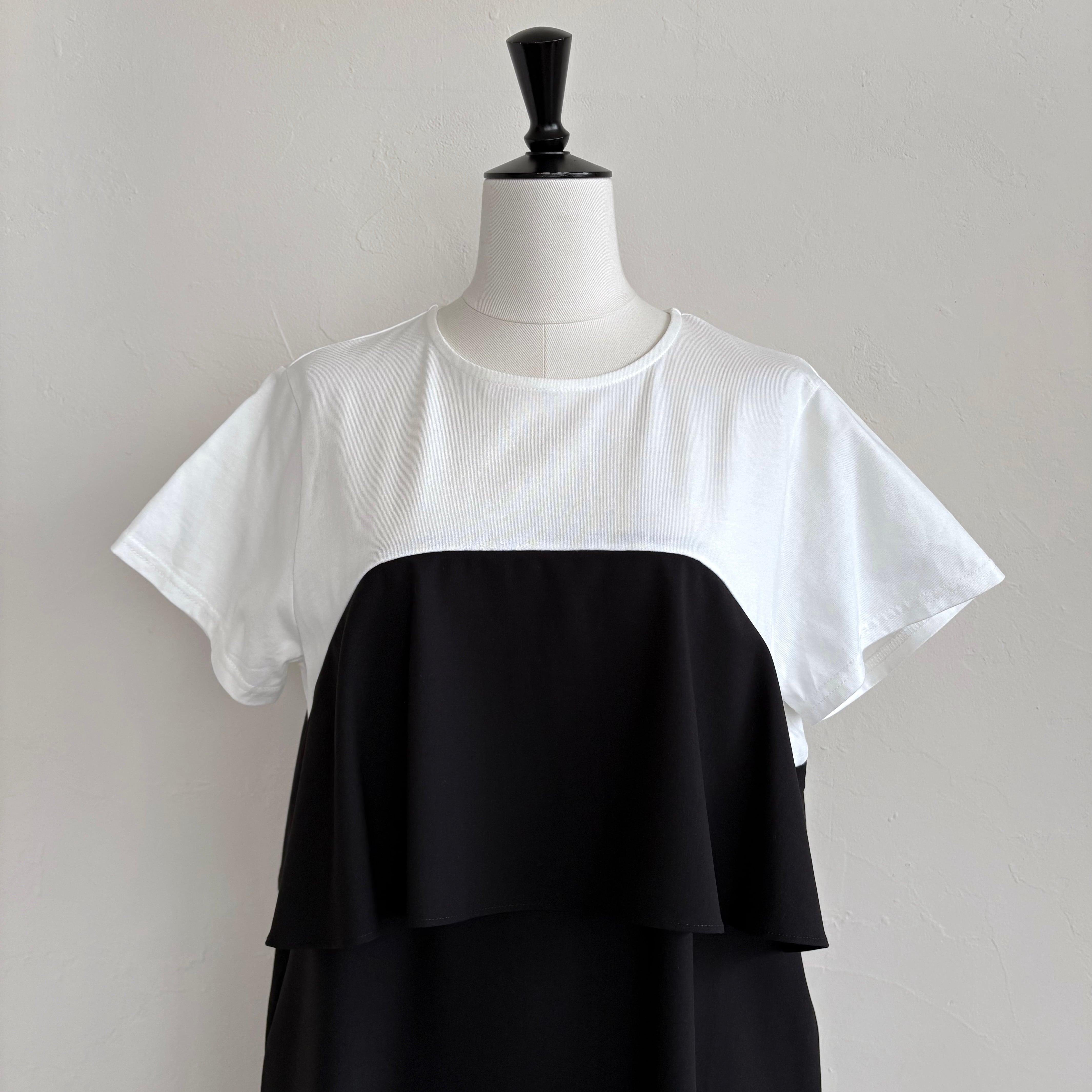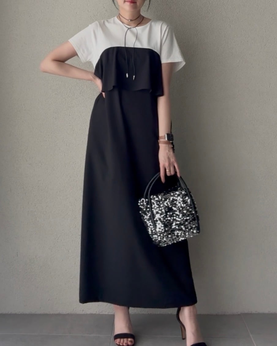 組み合わせたビスチェ風デザインのワンピース。