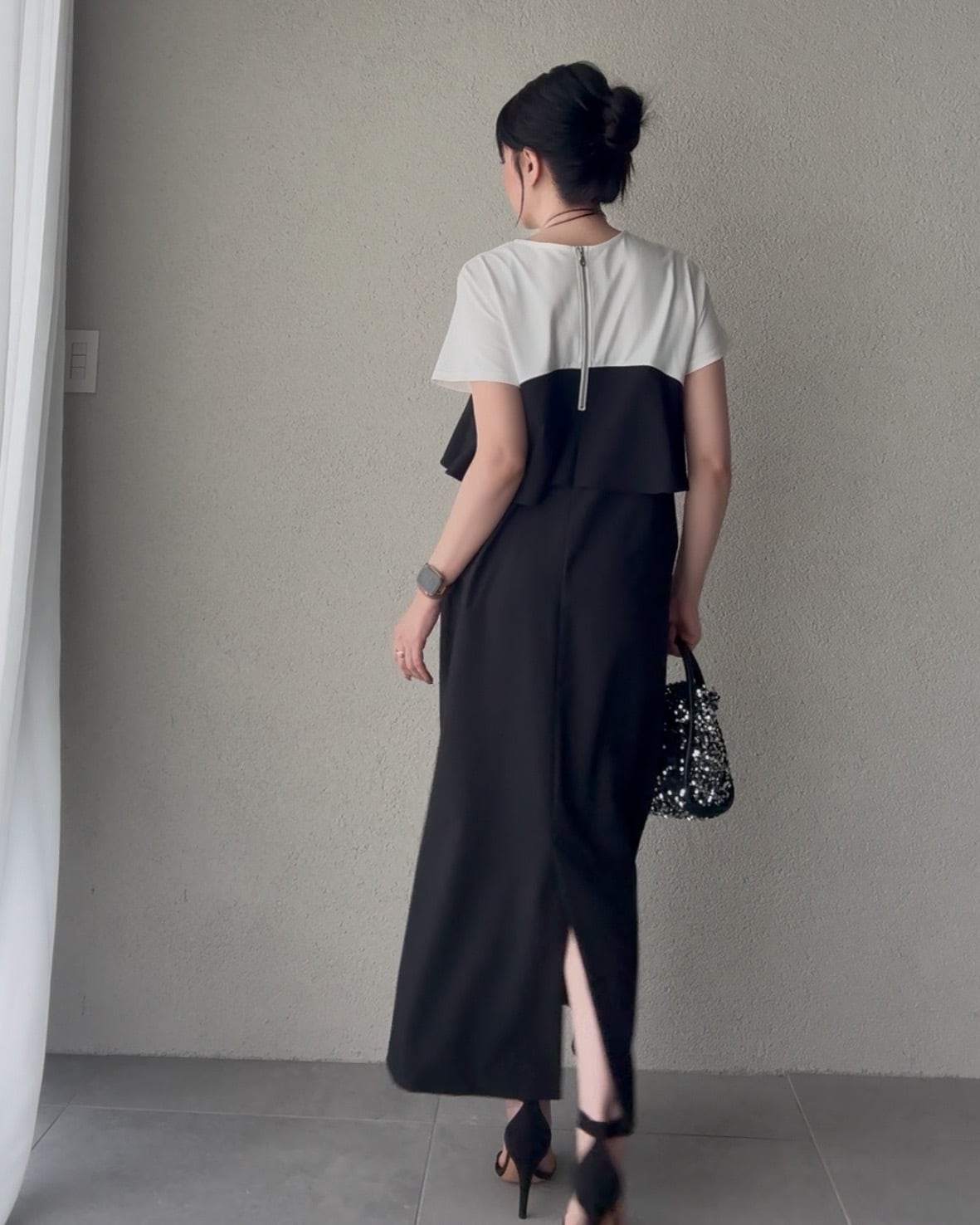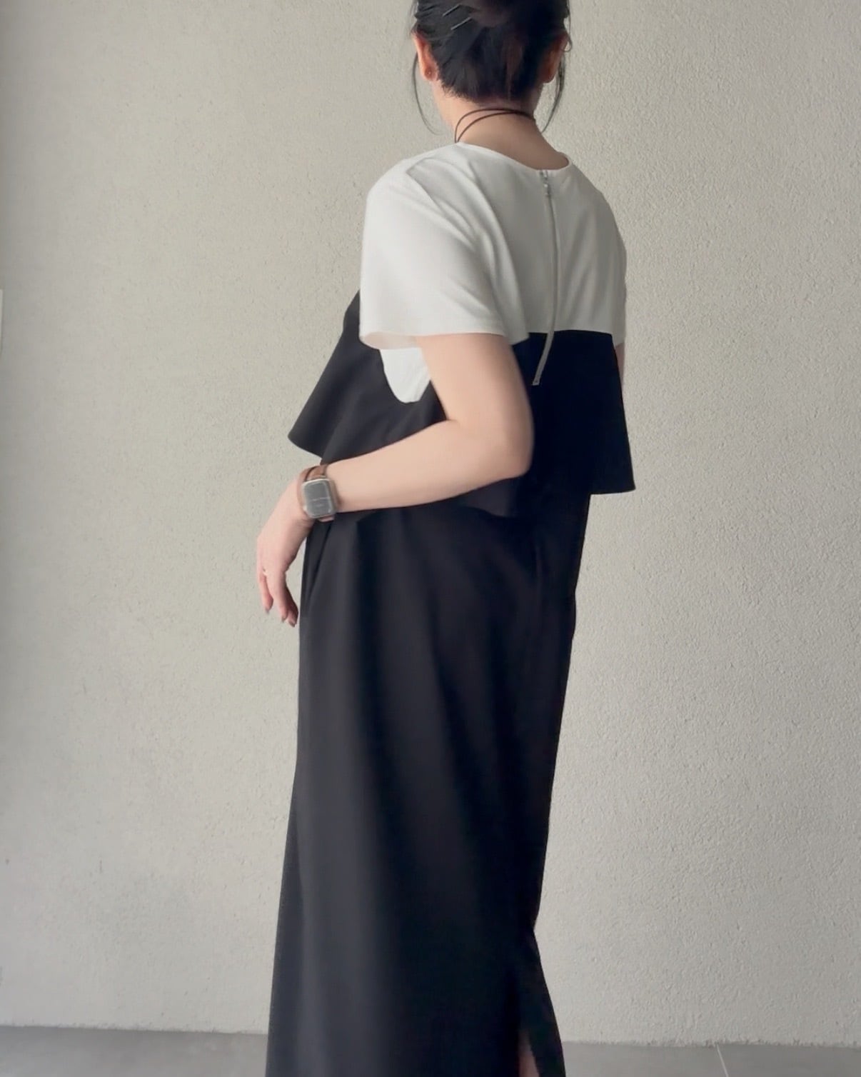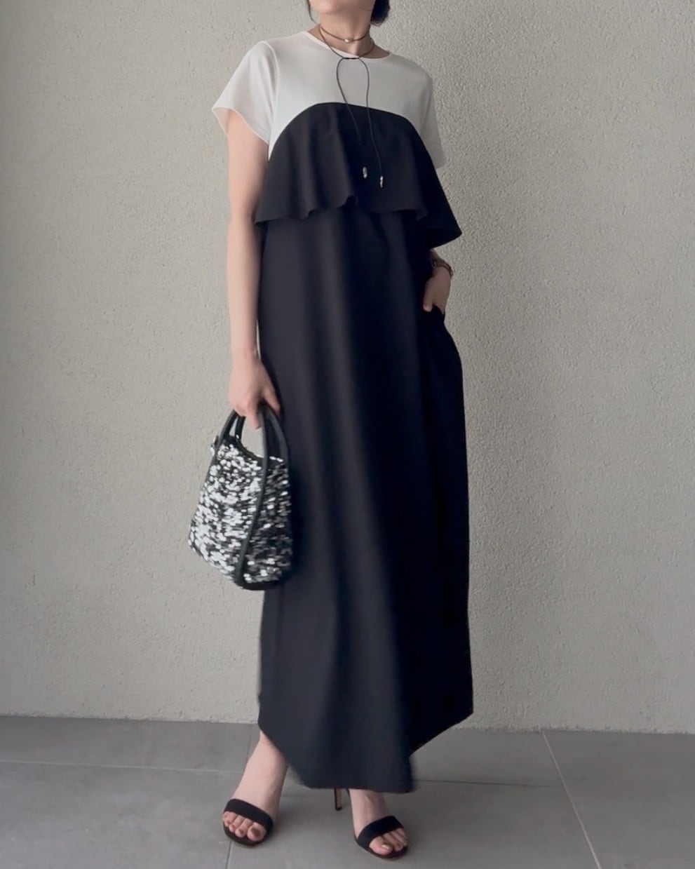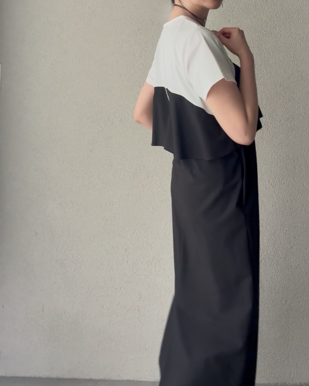 組み合わせたビスチェ風デザインのワンピース。