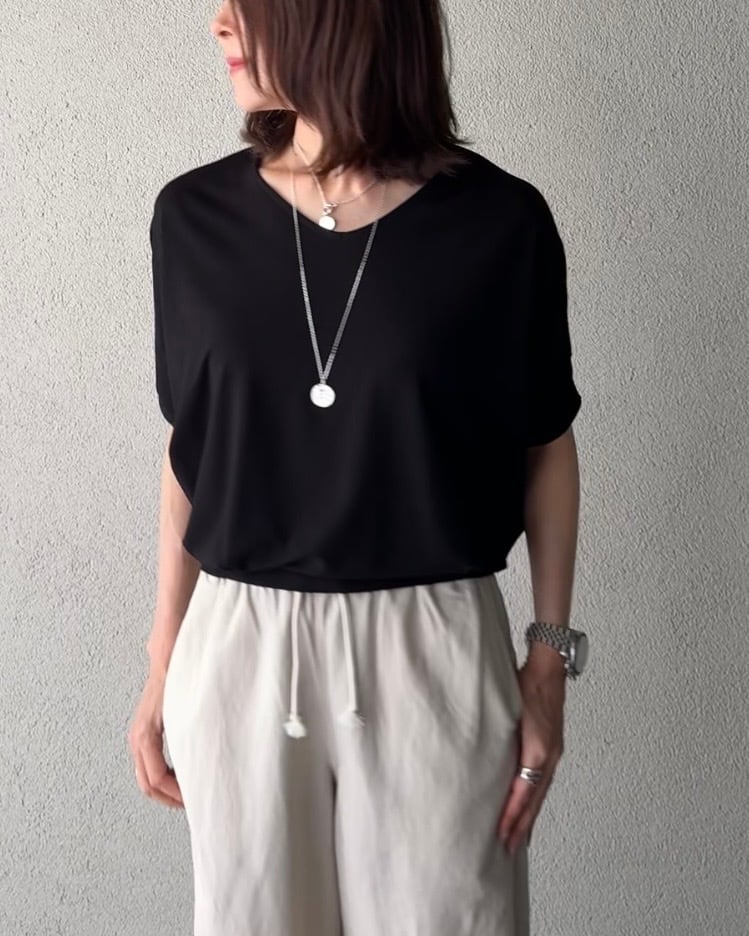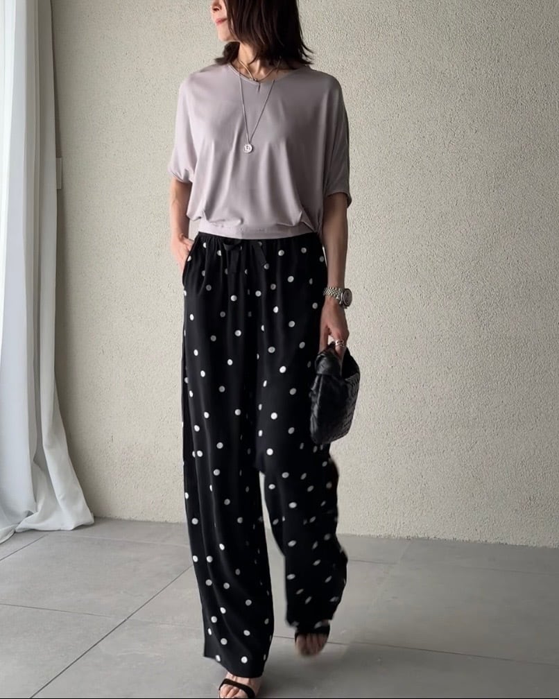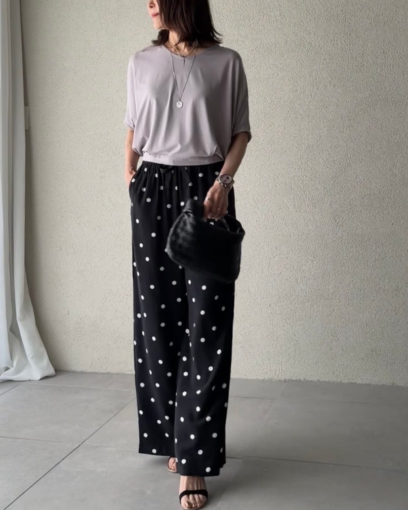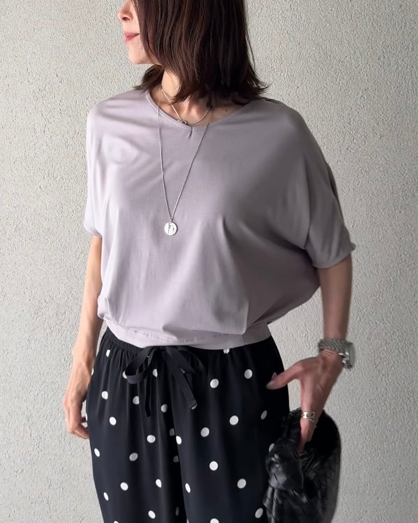 自然にカバーし、バランスよく着こなせるのもポイント。