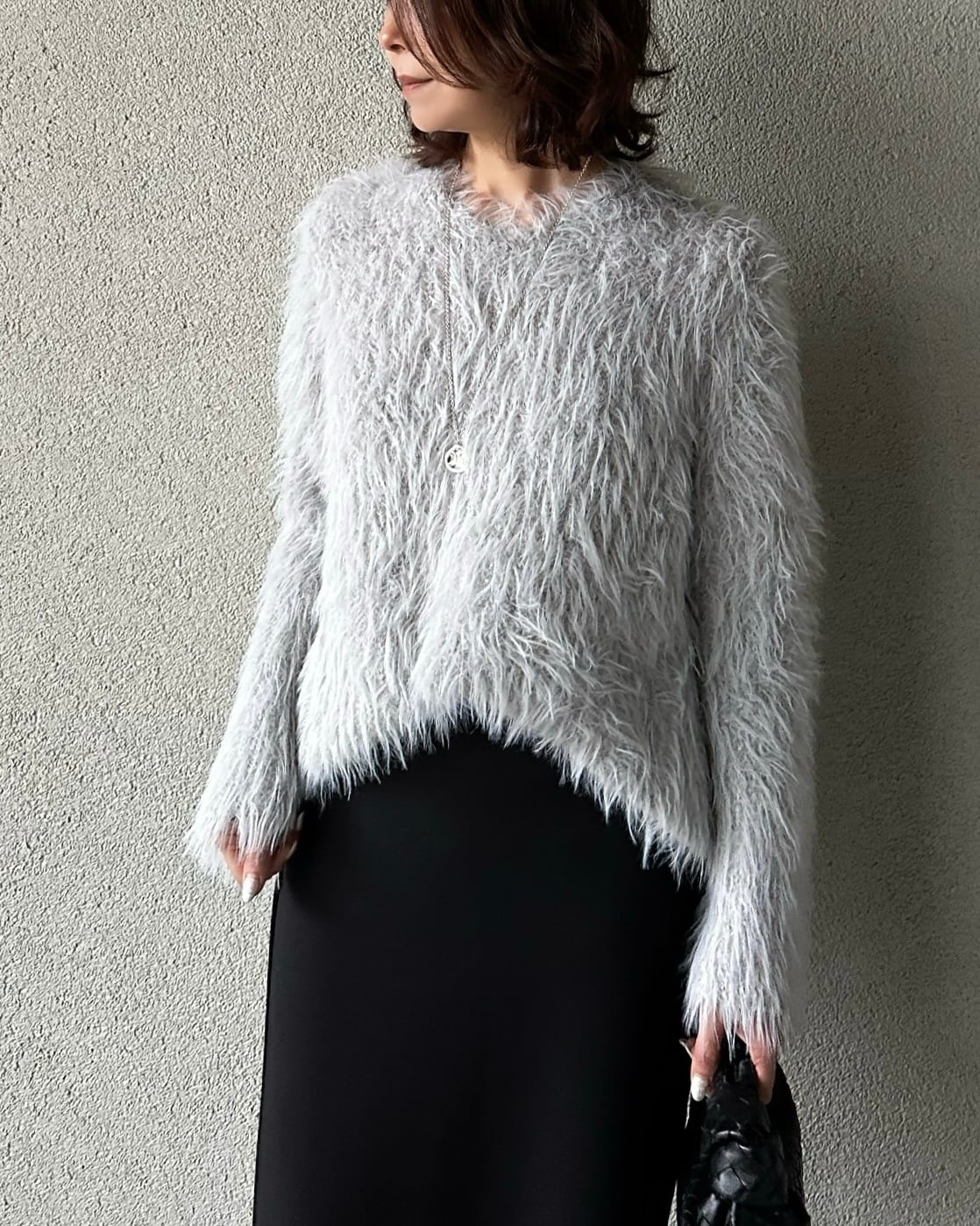 ずっと触れていたくなるような柔らかで毛足の長いシャギー素材を使用したニットプルオーバー。
