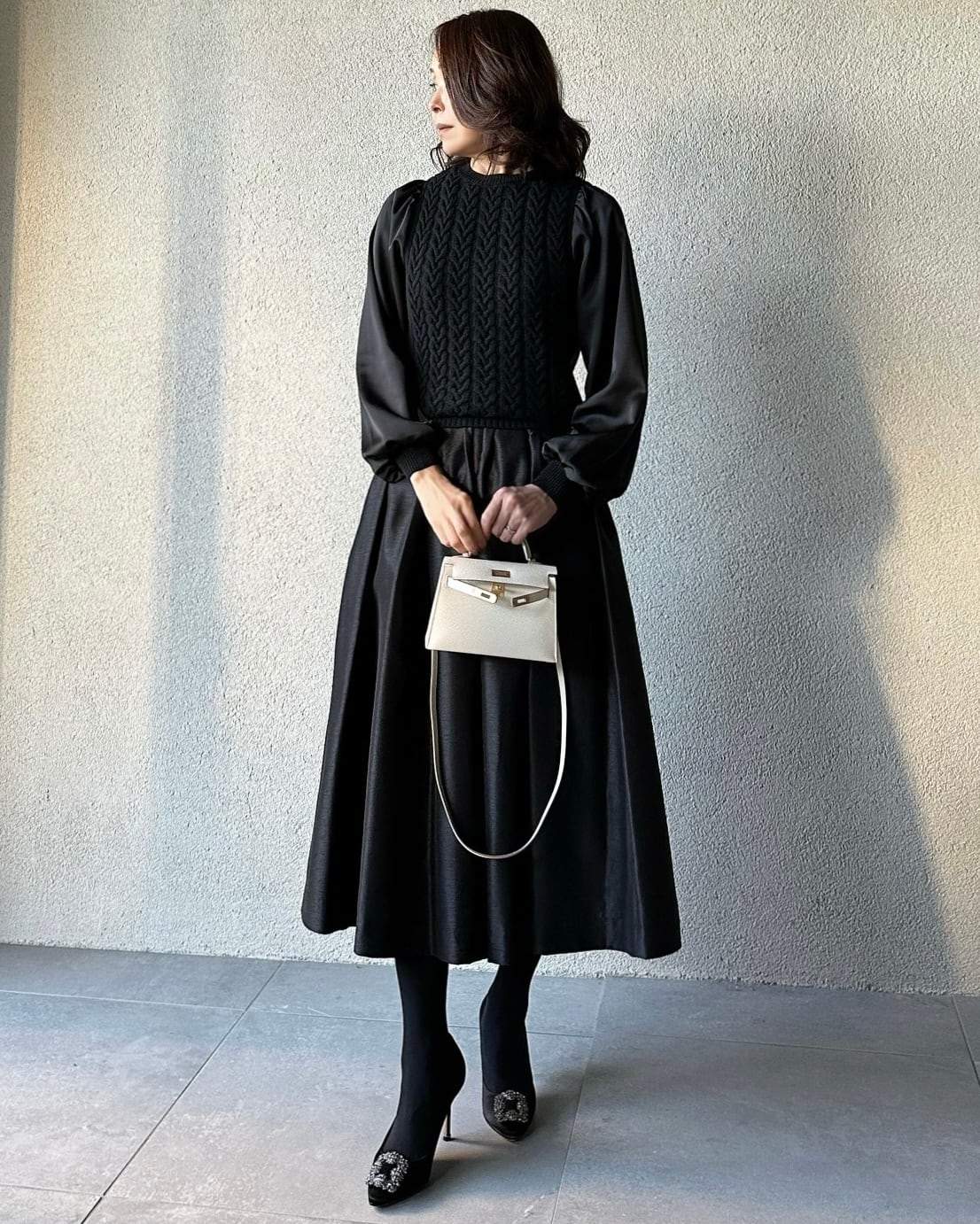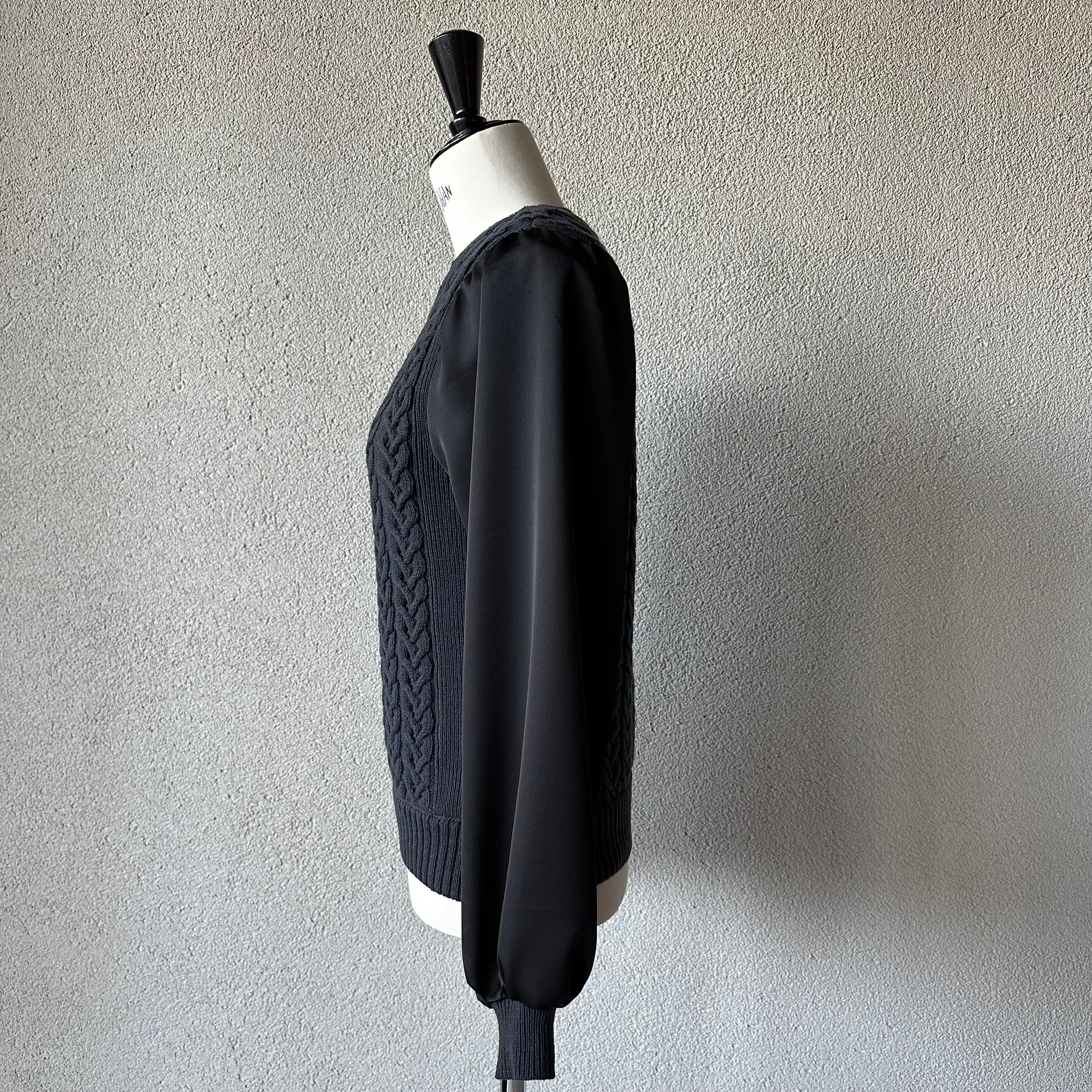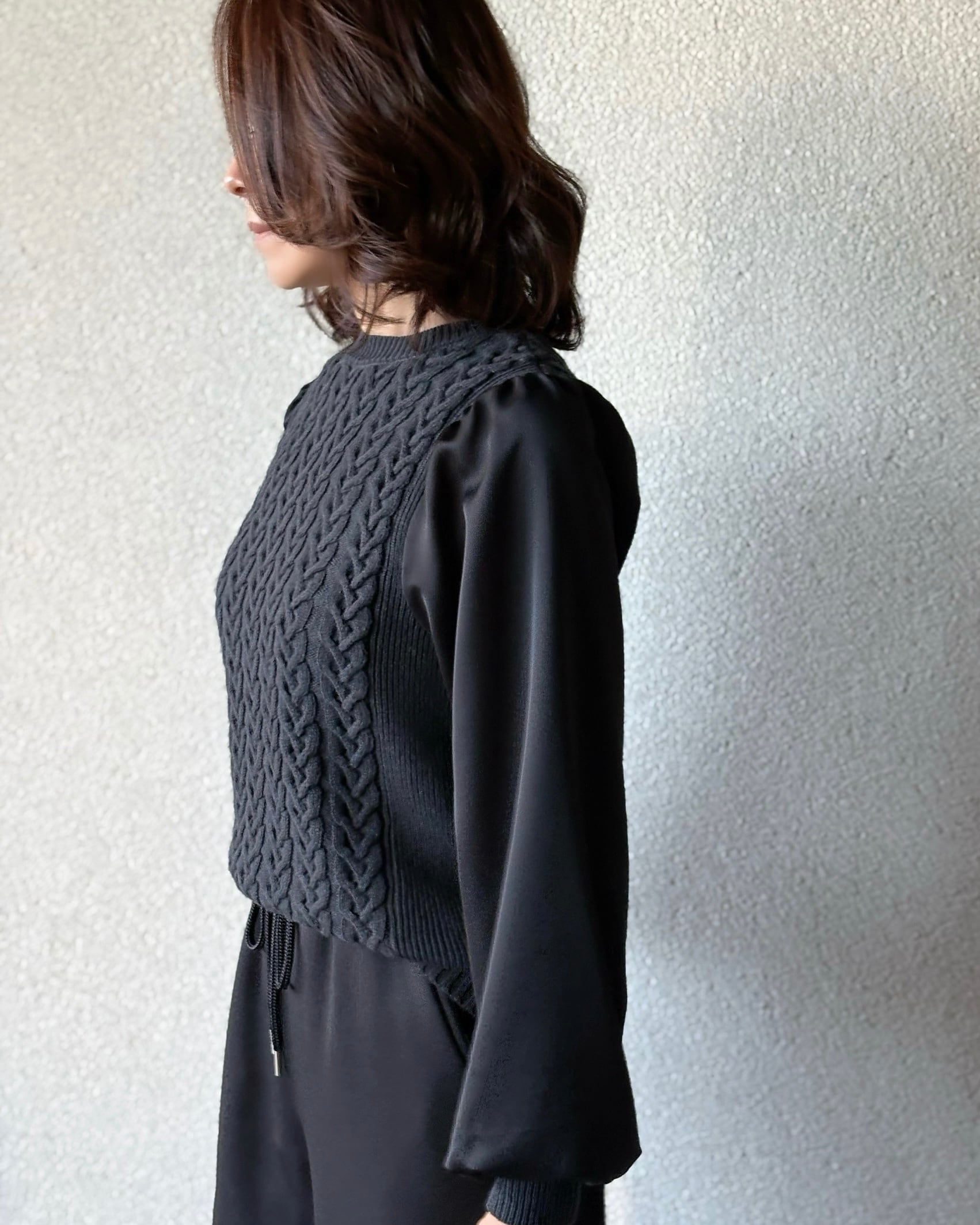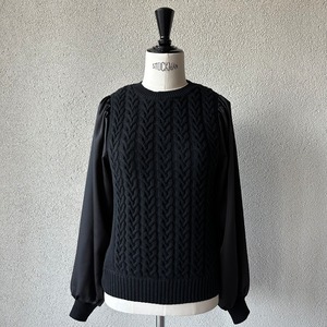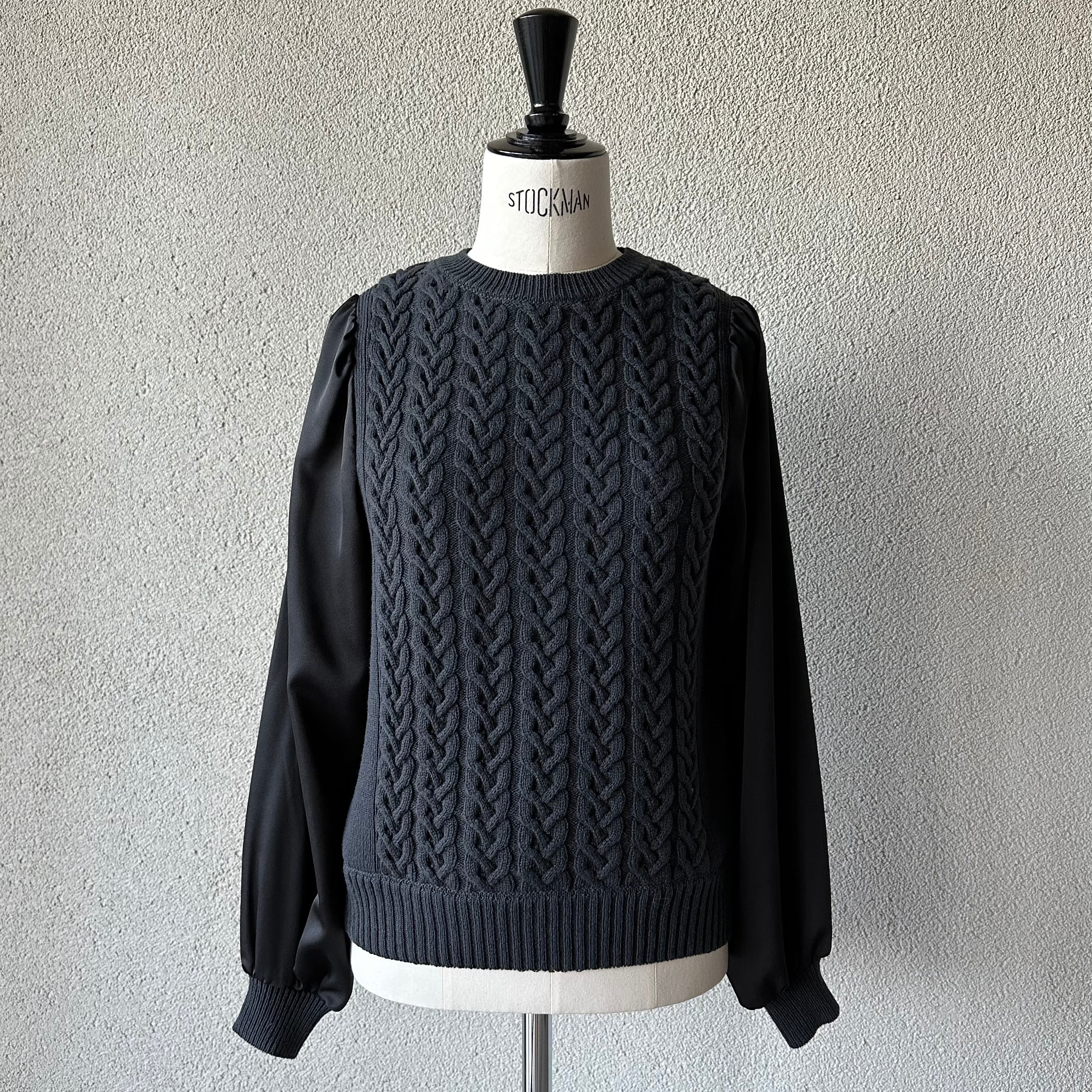 エレガントな袖使いに温かみのあるウールをケーブルパターンで編み上げた存在感のある1着。