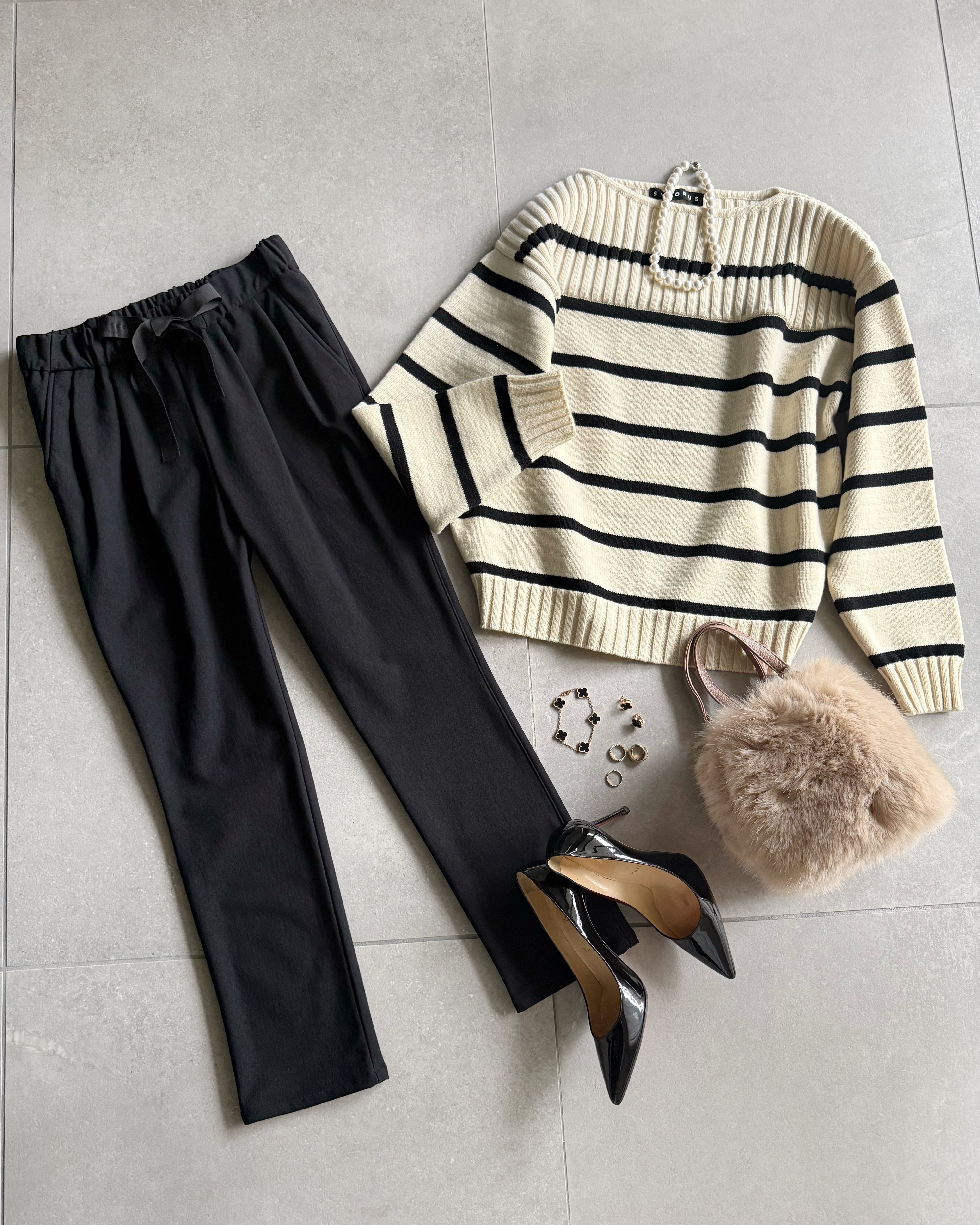【カラー】 [A] LIGHT BEIGE / [B] LIGHT BEIGE(ベース色)×BLACK(ボーダー色) / [C] BLACK