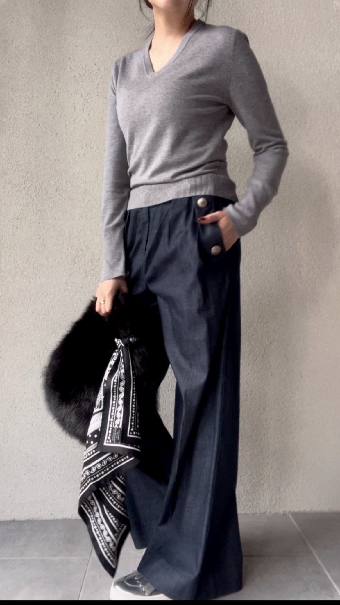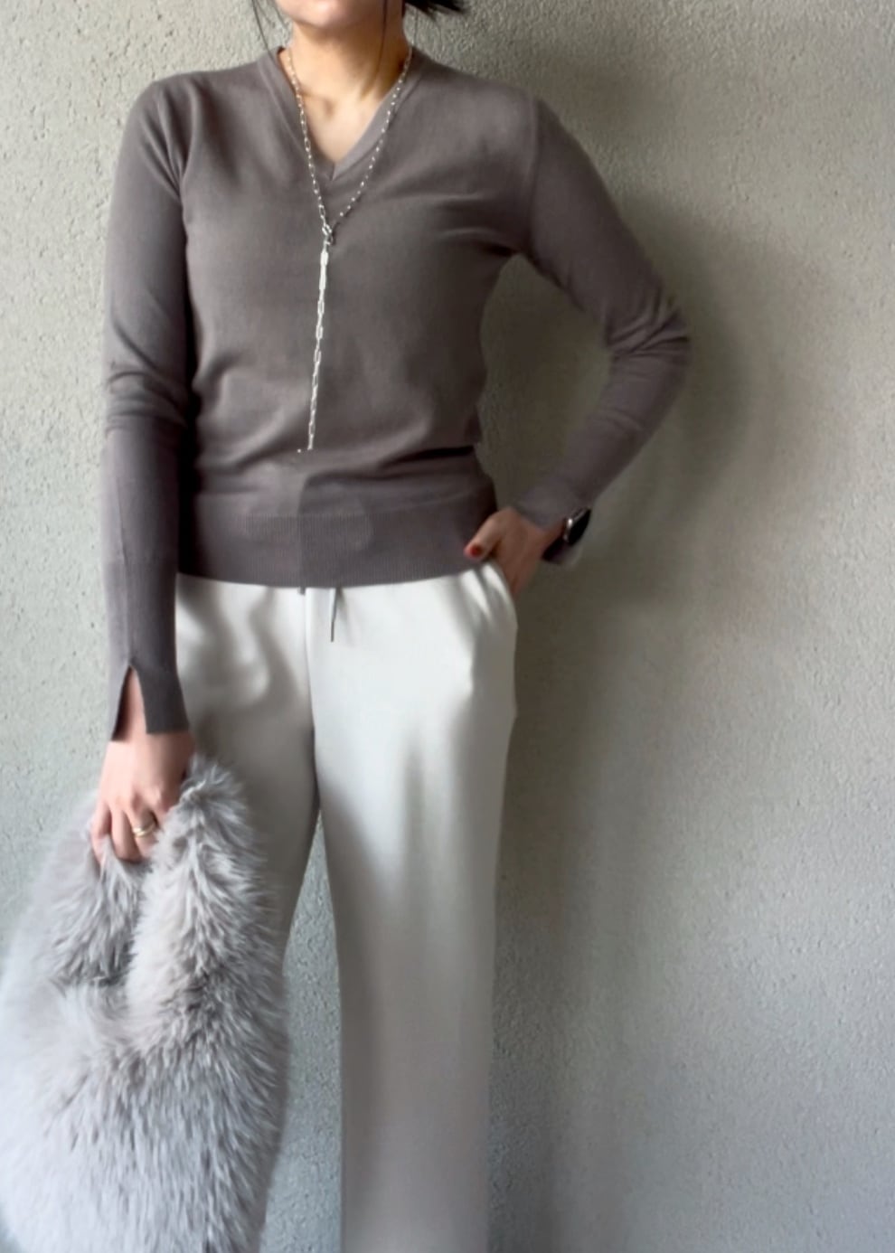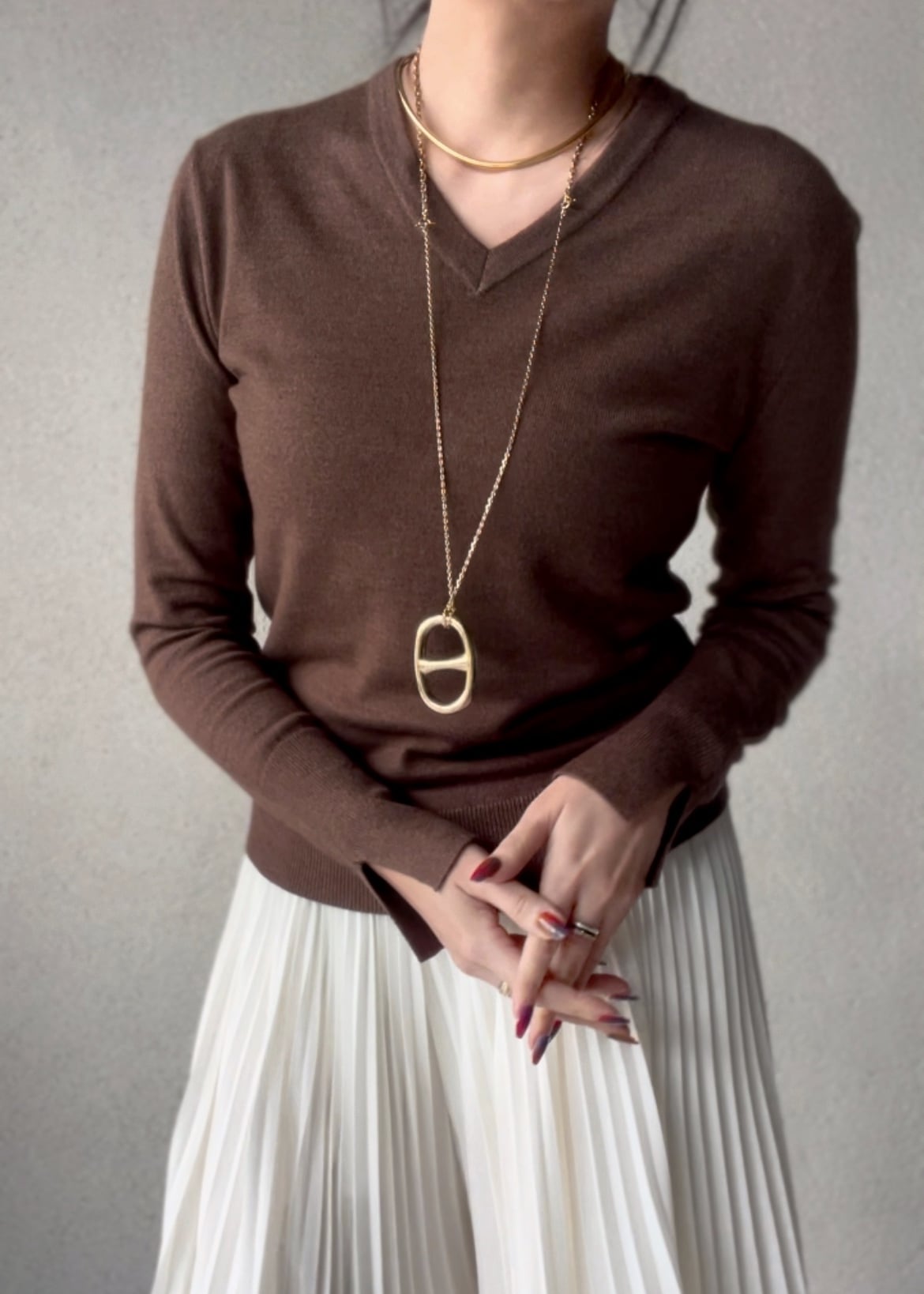 使用したVネックのプルオーバー。