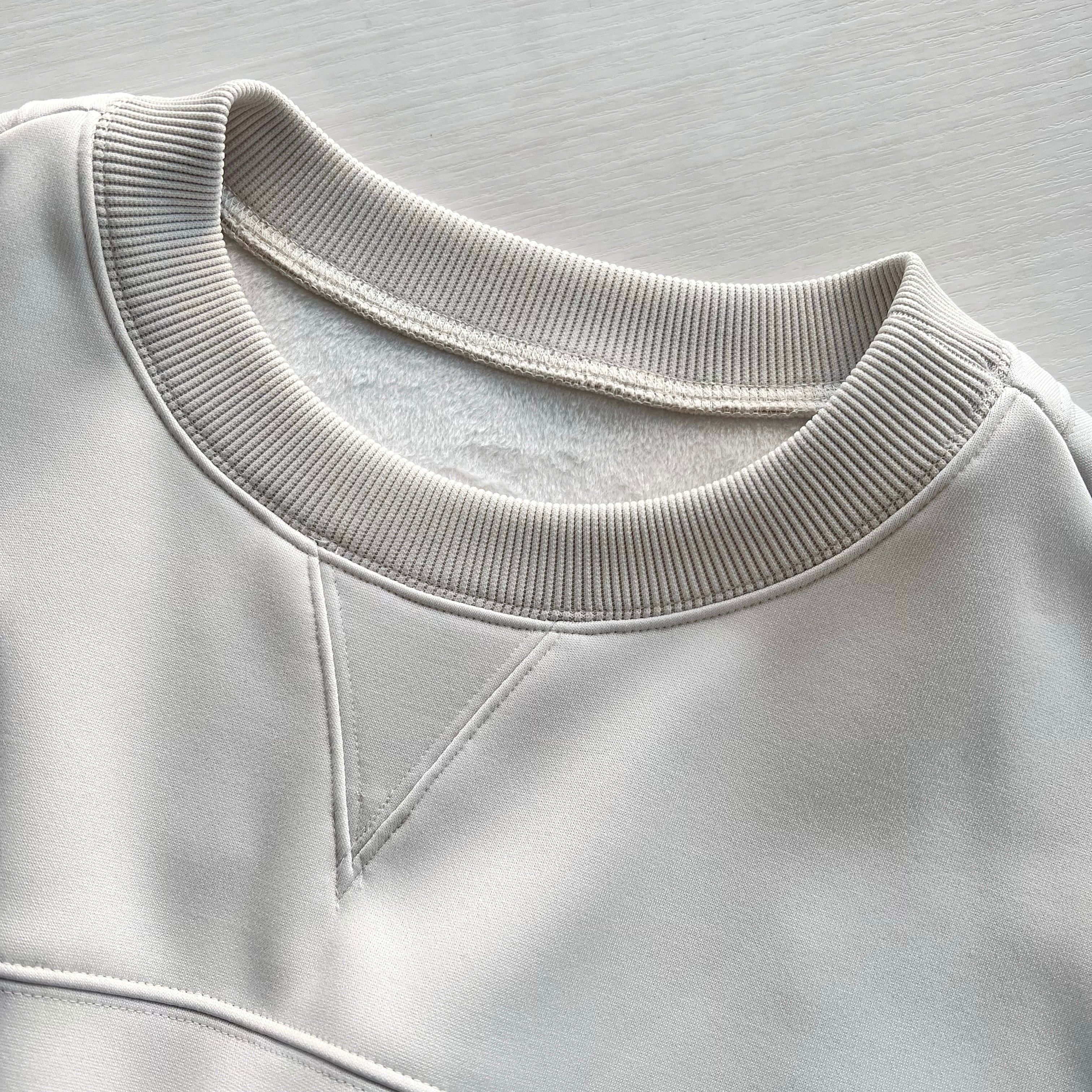ネックと袖口はリブ素材に切り替え