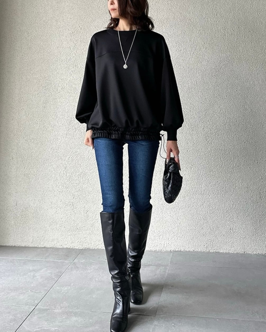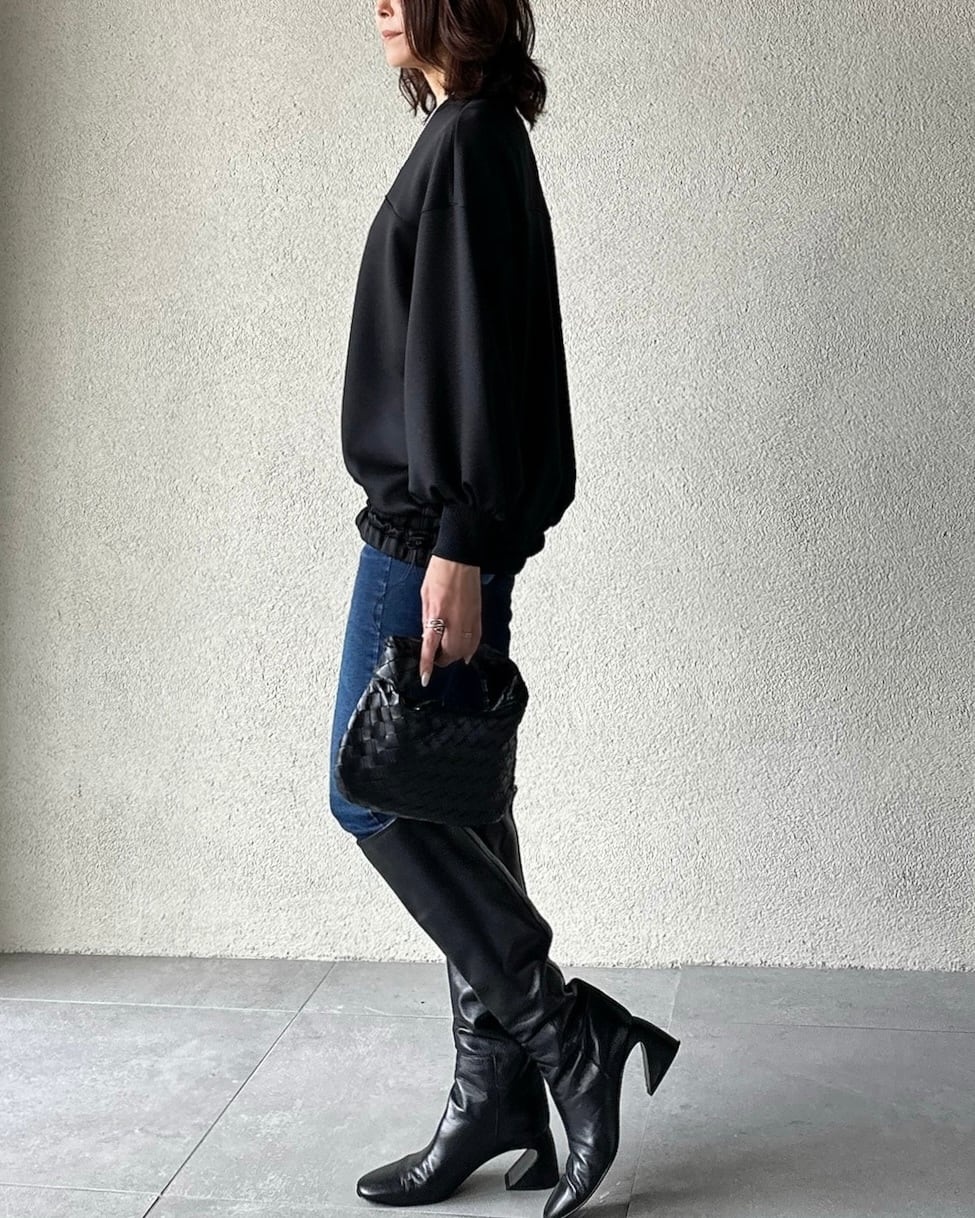 着丈長めのプルオーバー。